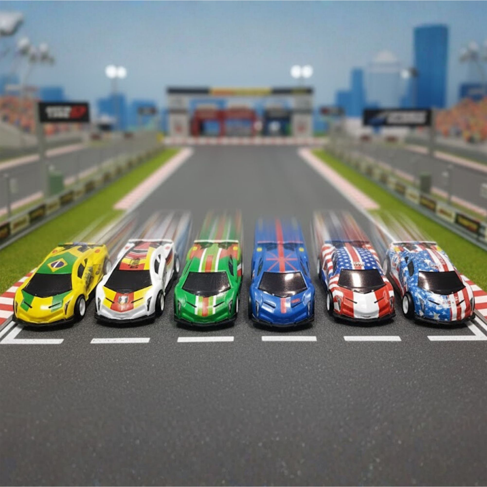 • SET CONTENTS: Complete set of 6 die-cast racing cars featuring attractive multicoloured designs and sporty details.