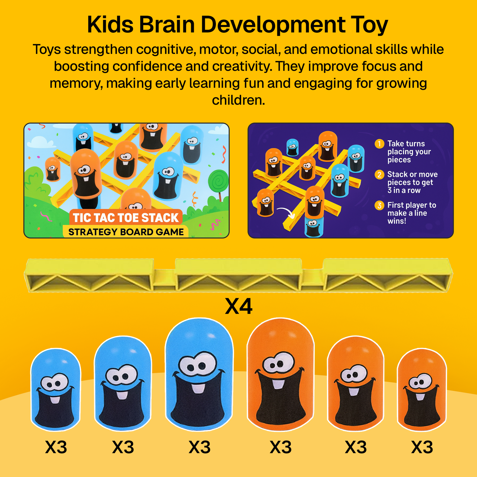 • Unique Stack & Nest Gameplay:Includes multiple sizes of pieces that can be placed over smaller ones, adding a strategic twist. Outsmart your opponent by covering their moves and creating winning lines.