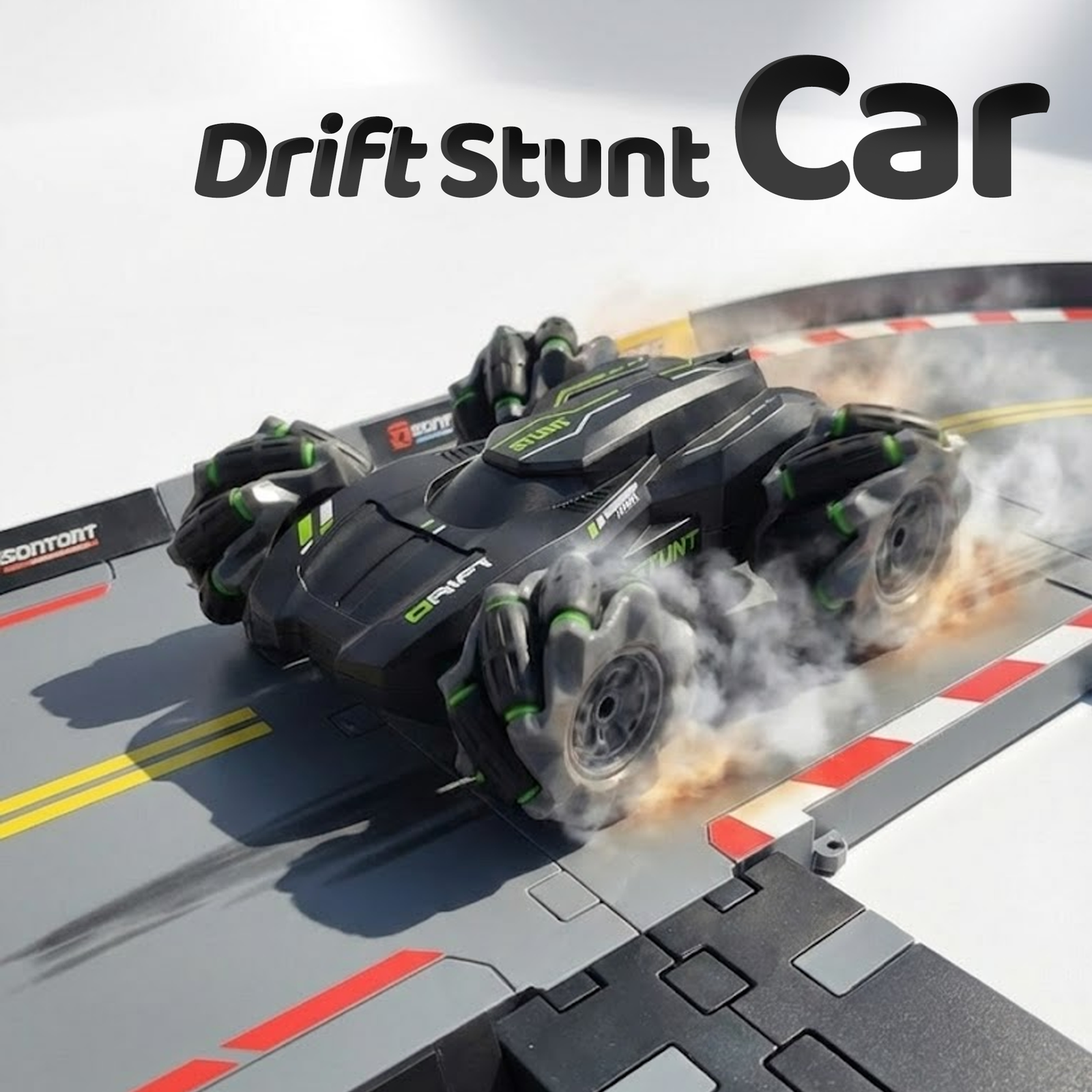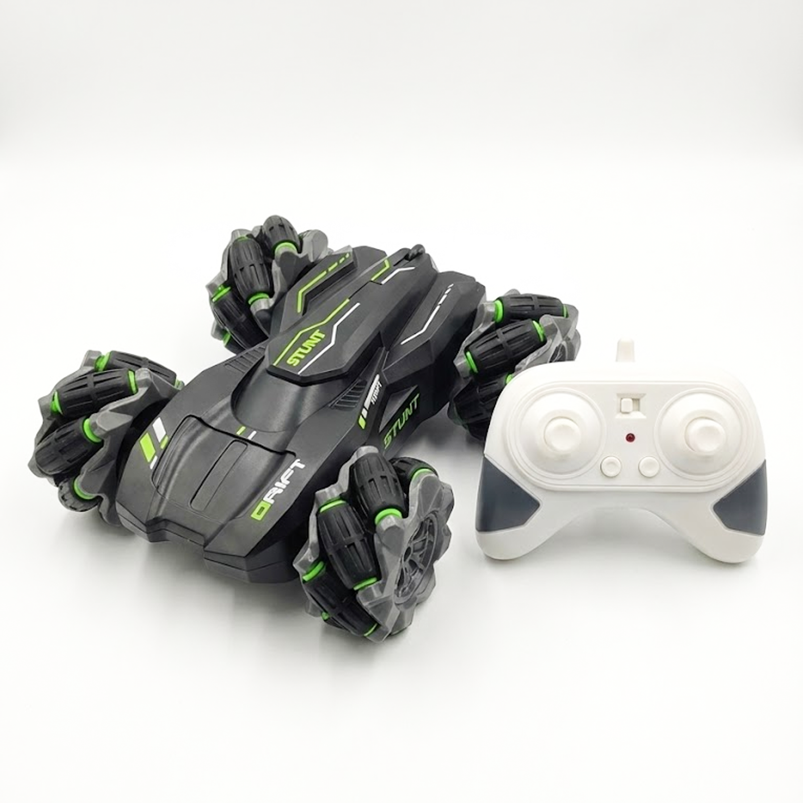 Remote Control Stunt Car with Dual-Directional Drift, 17cm x 15cm x 5.5cm, Black and Green, USB Rechargeable